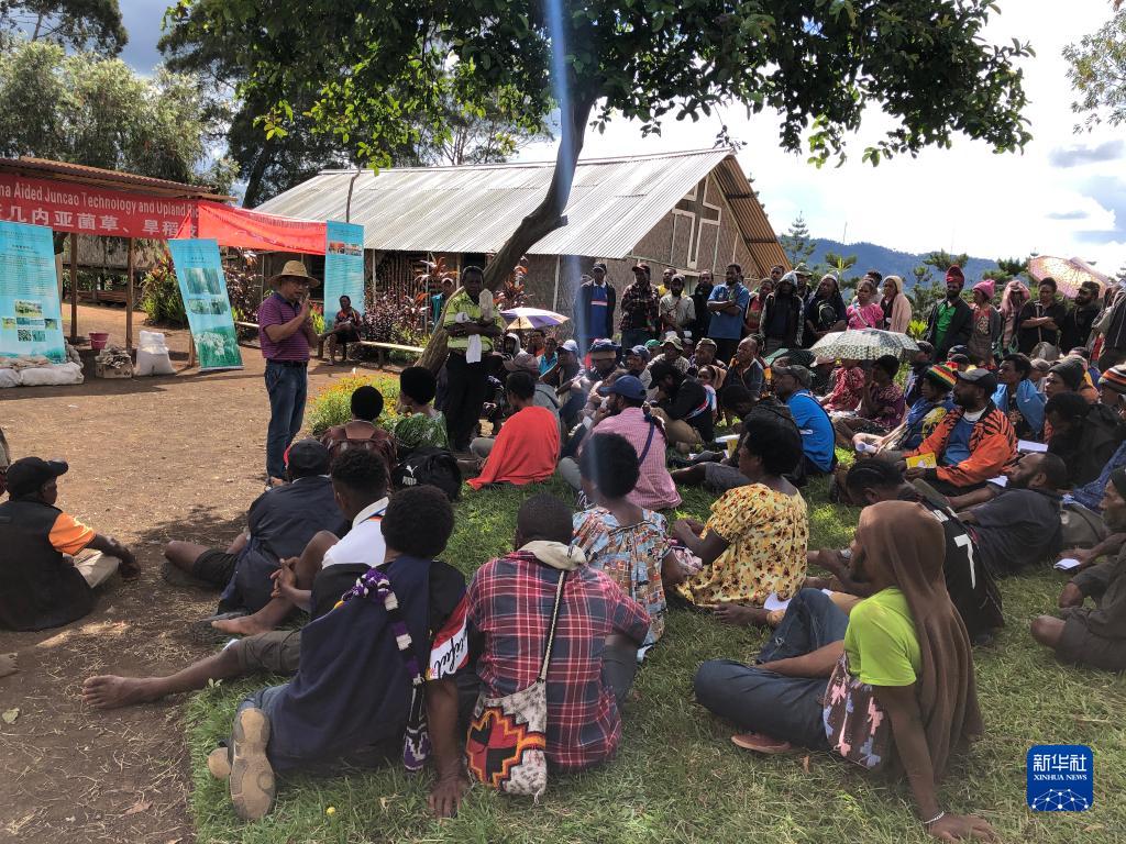 中國(guó)援巴布亞新幾內(nèi)亞菌草旱稻項(xiàng)目專家組組長(zhǎng)林應(yīng)興(戴草帽者)在巴布亞新幾內(nèi)亞?wèn)|高地省中國(guó)援助巴新菌草和旱稻技術(shù)項(xiàng)目第9期培訓(xùn)班上授課(2020年12月15日攝)。新華社發(fā)