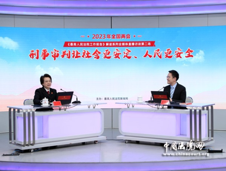 3月8日,由最高人民法院新聞局主辦的2023年全國(guó)兩會(huì)《最高人民法院工作報(bào)告》解讀系列全媒體直播訪談活動(dòng)第二場(chǎng)舉行。