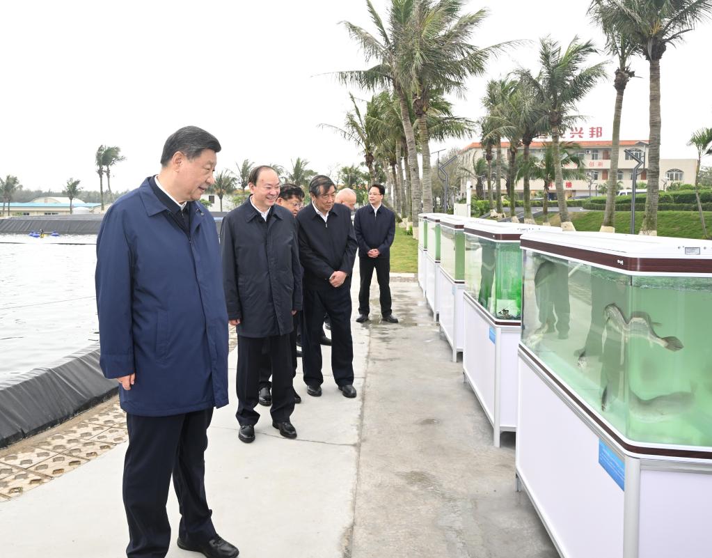 這是習(xí)近平總書記4月10日在廣東省湛江市國(guó)家863計(jì)劃項(xiàng)目海水養(yǎng)殖種子工程南方基地了解當(dāng)?shù)匕l(fā)展海洋漁業(yè)情況。新華社記者 李學(xué)仁 攝
