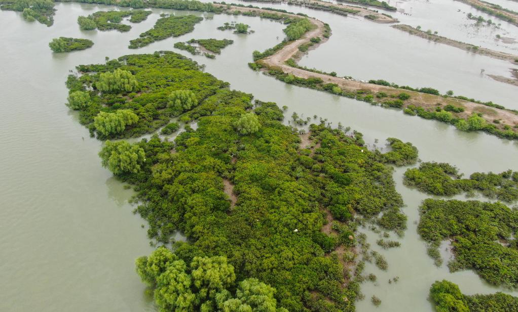 這是廣東湛江紅樹(shù)林國(guó)家級(jí)自然保護(hù)區(qū)嶺頭島保護(hù)小區(qū)(2019年11月12日無(wú)人機(jī)拍攝)。新華社記者 鄧華 攝