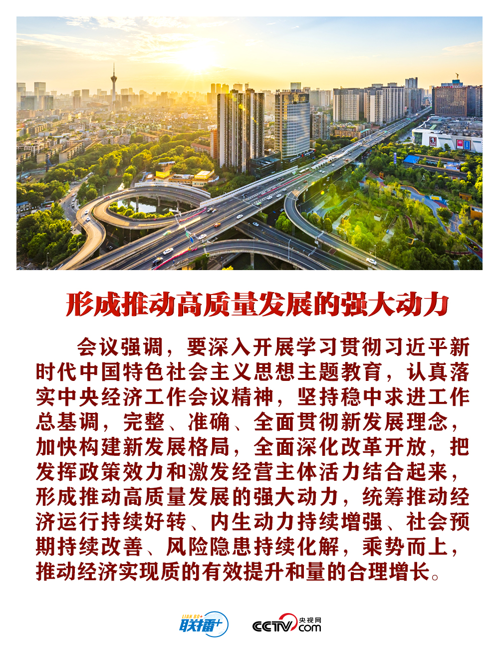 會議認(rèn)為,今年以來,在以習(xí)近平同志為核心的黨中央堅(jiān)強(qiáng)領(lǐng)導(dǎo)下,我國經(jīng)濟(jì)社會全面恢復(fù)常態(tài)化運(yùn)行,經(jīng)濟(jì)增長好于預(yù)期,市場需求逐步恢復(fù),經(jīng)濟(jì)發(fā)展呈現(xiàn)回升向好態(tài)勢,經(jīng)濟(jì)運(yùn)行實(shí)現(xiàn)良好開局。同時,會議指出,當(dāng)前我國經(jīng)濟(jì)運(yùn)行好轉(zhuǎn)主要是恢復(fù)性的,經(jīng)濟(jì)轉(zhuǎn)型升級面臨新的阻力,推動高質(zhì)量發(fā)展仍需要克服不少困難挑戰(zhàn)。
