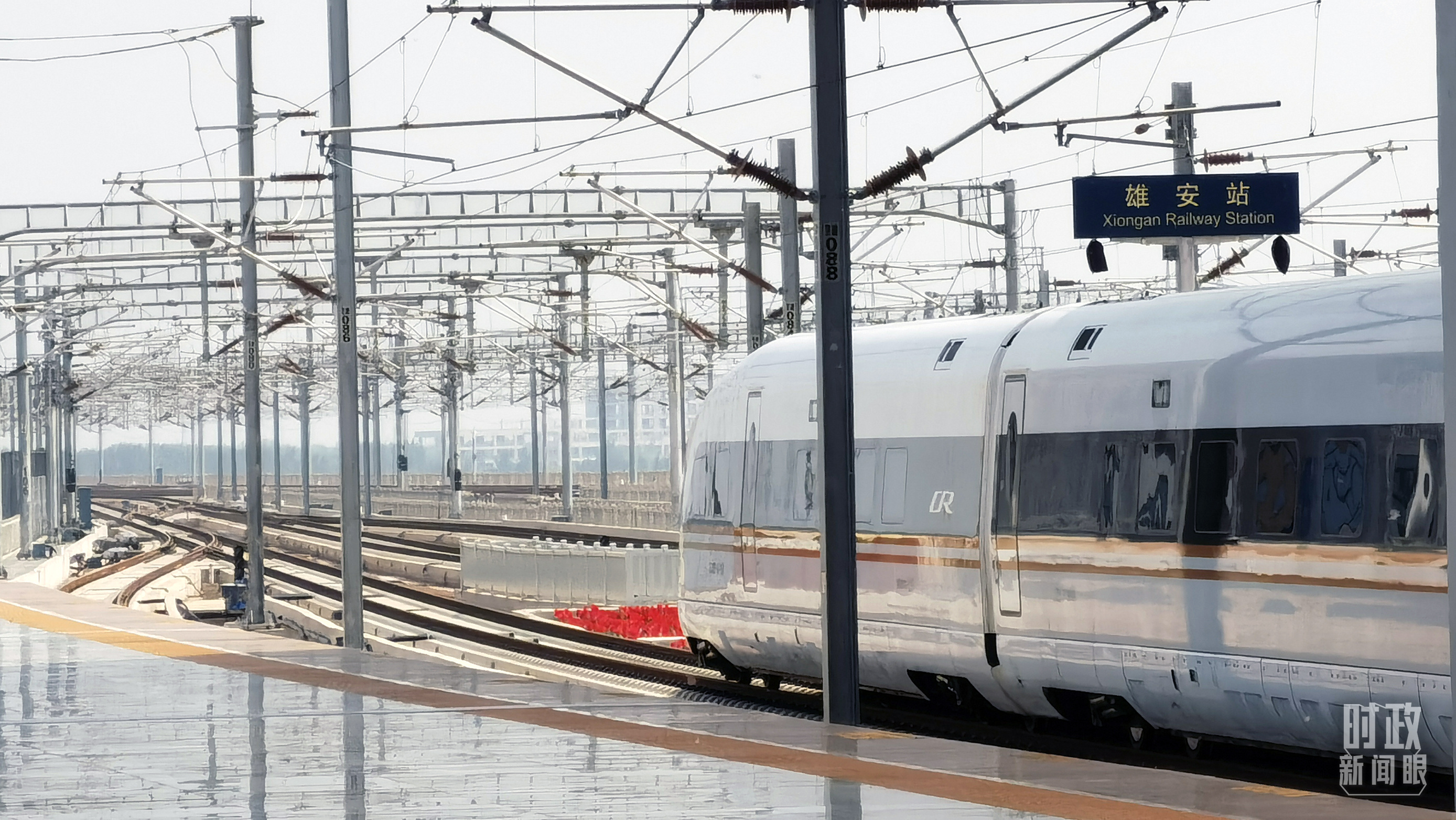 △復(fù)興號(hào)列車(chē)駛?cè)胄郯舱?。(總臺(tái)央視記者郭鴻拍攝)