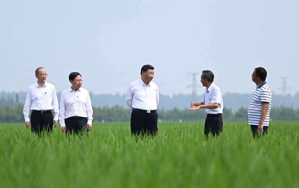 2022年6月8日,習(xí)近平在四川眉山市東坡區(qū)太和鎮(zhèn)永豐村高標(biāo)準(zhǔn)水稻種植基地考察,了解水稻試驗育種和種植推廣情況。