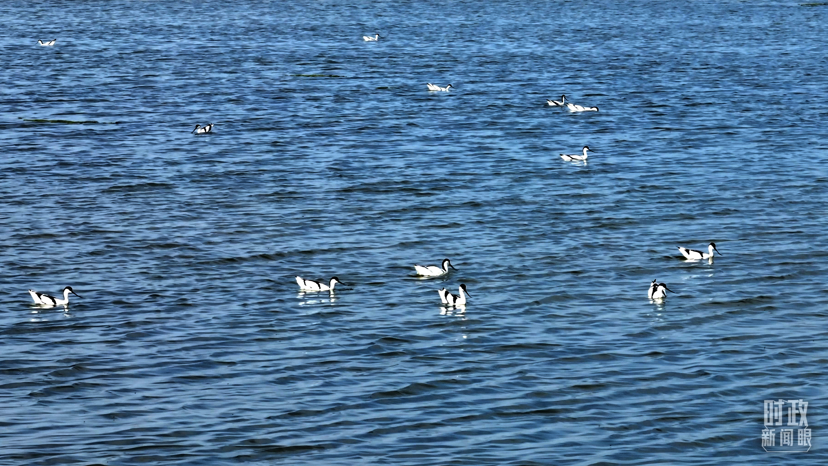 △鹽湖棲息的鳥類。(總臺記者裴大偉、康曉宇拍攝)