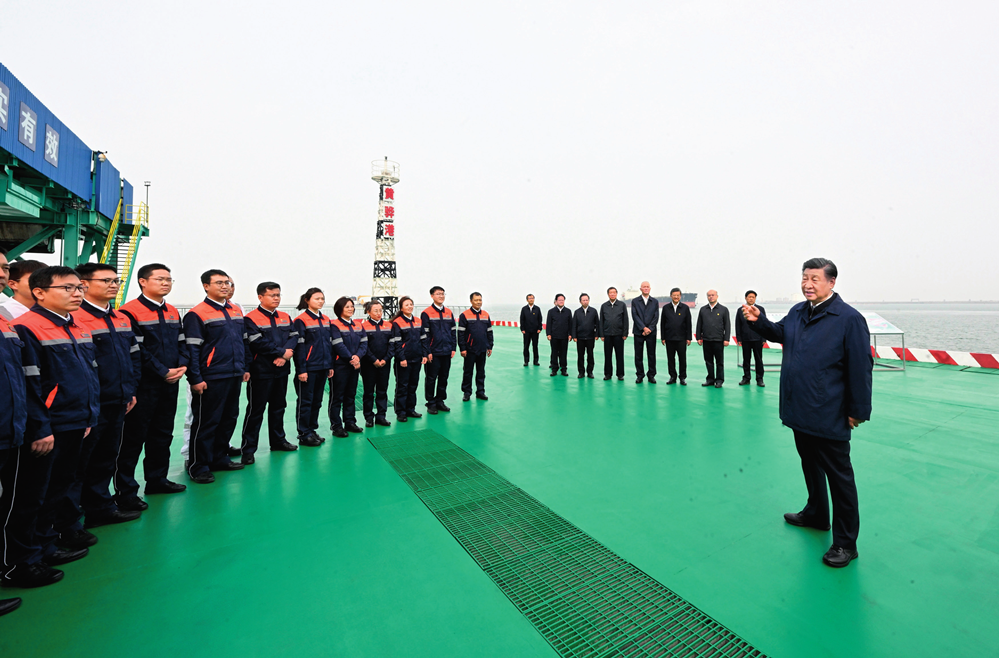 5 月 11 日至 12 日,中共中央總書記、國(guó)家主席、中央軍委主席習(xí)近平在河北考察,并主持召開深入推進(jìn)京津冀協(xié)同發(fā)展座談會(huì)。這是 11 日下午,習(xí)近平在滄州市黃驊港煤炭港區(qū)碼頭考察時(shí),同碼頭工作人員、船務(wù)人員親切交流 李學(xué)仁攝 / 本刊