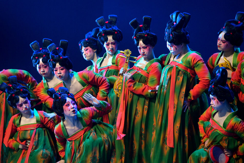 演員在第十二屆中國舞蹈“荷花獎”古典舞終評演出上表演《唐宮夜宴》(2020年10月16日攝)。新華社記者 李嘉南 攝
