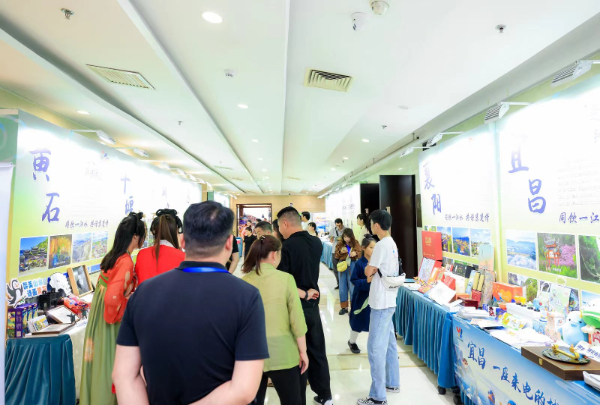 2023“極目楚天·鐘情湖北”文旅推介會(huì)現(xiàn)場展臺(tái)。