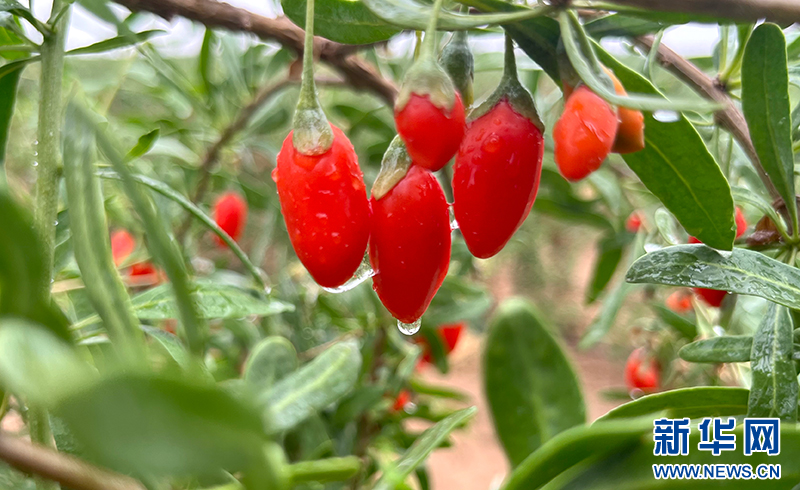 新華網(wǎng)銀川6月18日電 夏雨潤澤煥然新。18日,以“六月頭茬枸杞紅 開園采摘享健康”為主題的第六屆枸杞產(chǎn)業(yè)博覽會枸杞開園節(jié)在中國供銷惠農(nóng)·璽贊生態(tài)枸杞莊園開幕。一場雨讓頭茬枸杞鮮果嬌艷欲滴,分外惹人。