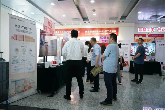 活動(dòng)期間,陜西聯(lián)通一樓大廳設(shè)科技創(chuàng)新成果和智慧家庭展區(qū),吸引了眾多嘉賓駐足觀看。