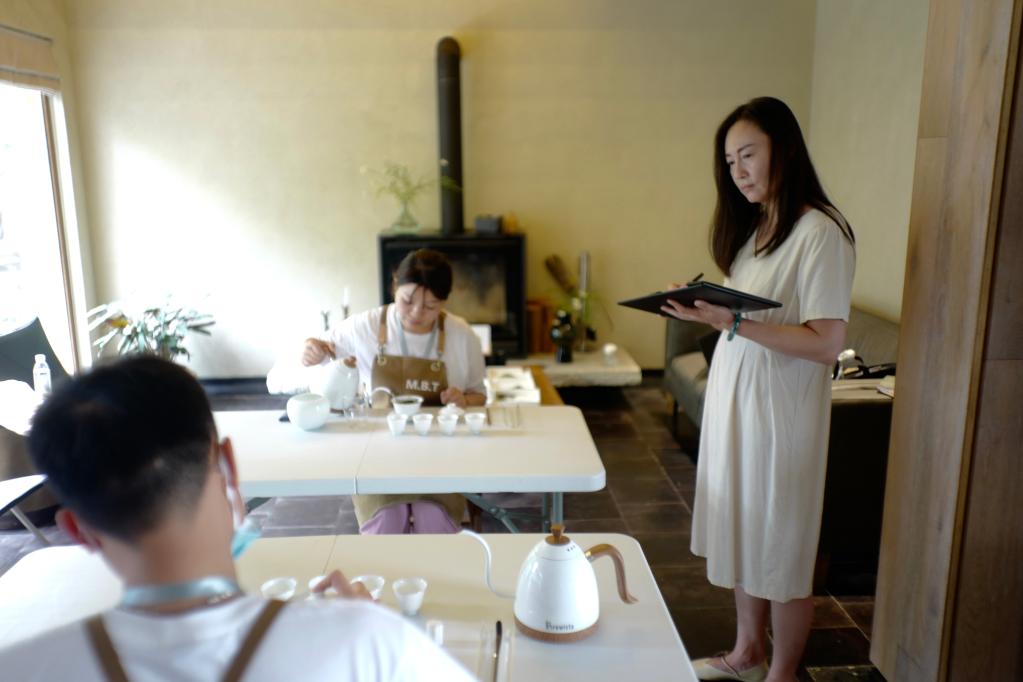 學(xué)員在莫干山民宿管家培訓(xùn)中心內(nèi)進行茶藝考核。新華社記者徐中哲 攝