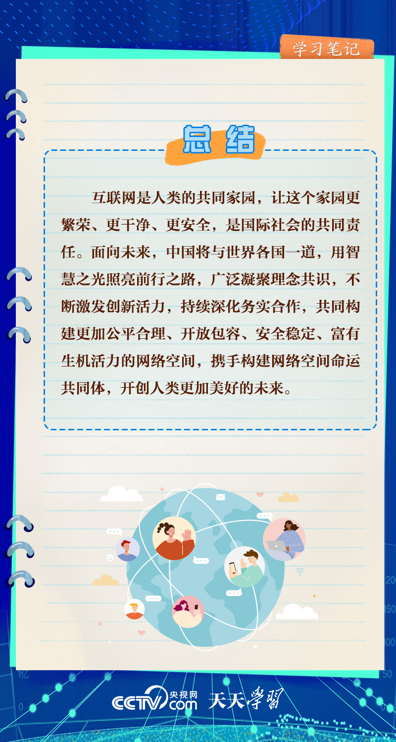 天天學(xué)習(xí)“互聯(lián)網(wǎng)發(fā)展是無國界、無邊界的,利用好、發(fā)展好、治理好互聯(lián)網(wǎng)必須深化網(wǎng)絡(luò)空間國際合作,攜手構(gòu)建網(wǎng)絡(luò)空間命運共同體。”面對日益發(fā)展擴(kuò)大的網(wǎng)絡(luò)空間,習(xí)近平主席倡導(dǎo)構(gòu)建網(wǎng)絡(luò)空間命運共同體,為推動全球網(wǎng)絡(luò)空間互聯(lián)互通、共享共治注入中國智慧。