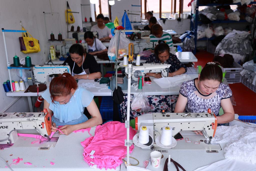 2023年7月18日,貴州最大易地搬遷安置點(diǎn)畢節(jié)市七星關(guān)區(qū)柏楊林街道,搬遷居民在就業(yè)幫扶車間工作。新華社記者劉續(xù) 攝