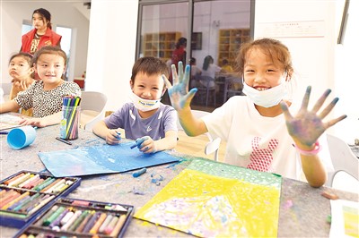 江口村的孩子在藝術(shù)區(qū)工藝美術(shù)培訓(xùn)班上畫畫。鐘 磊攝