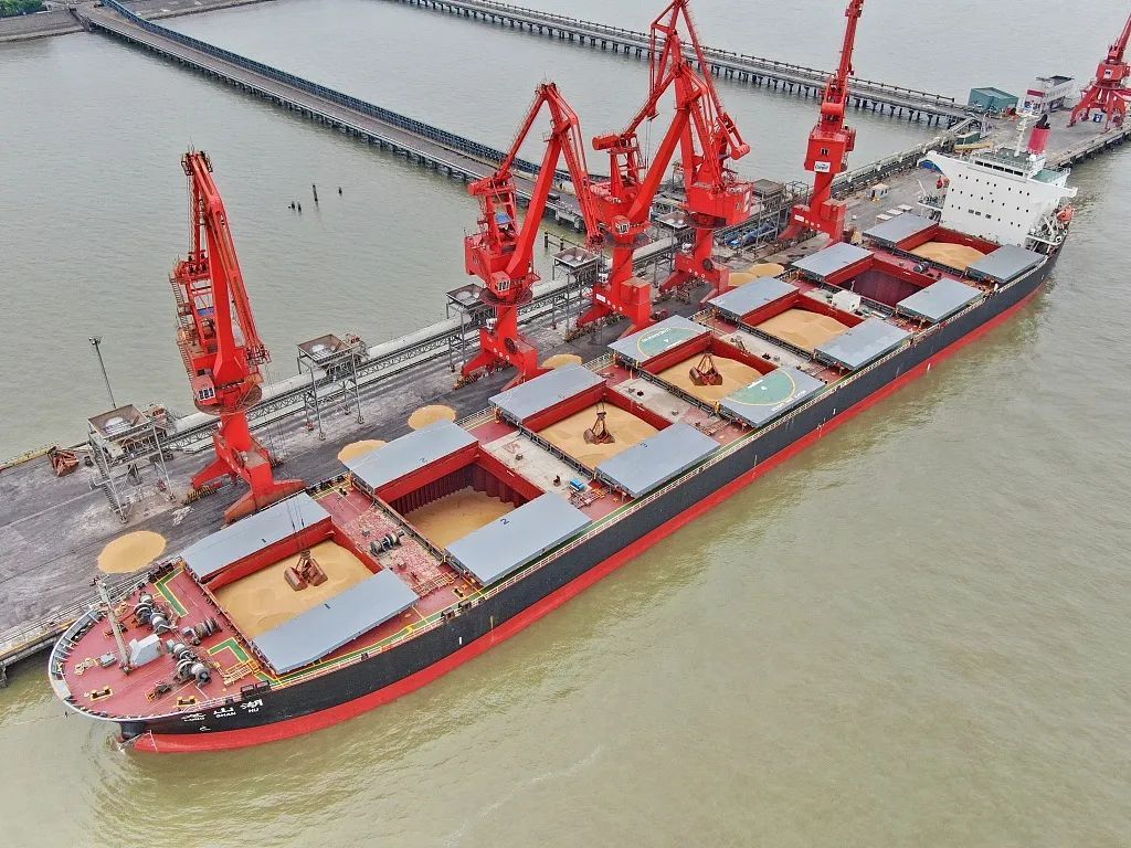 △2022年5月,巴西貨輪運(yùn)載54000噸大豆抵達(dá)江蘇南通。