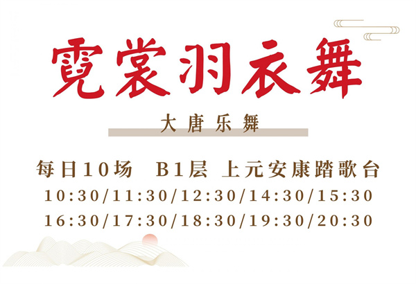 準備前去打卡的游客注意啦,全場最火的人氣表演《霓裳羽衣舞》每天表演10場,每場演出座位可容納150人,最好在表演開始前半小時就去排隊哦。