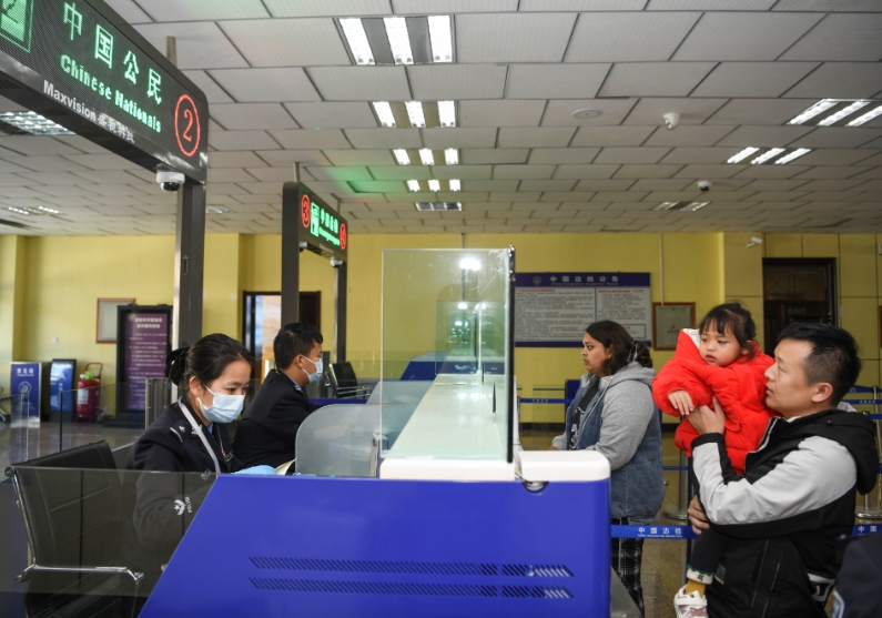2023年8月29日,準(zhǔn)備前往巴基斯坦探親的跨國(guó)夫婦鄭銀果、索娜帶著女兒辦理通關(guān)手續(xù)。