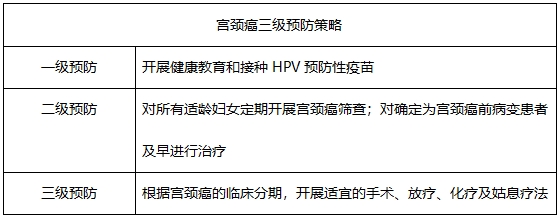 2017年中國子宮頸癌綜合防控指南提出了三級預防策略,其中接種HPV疫苗是第一步。