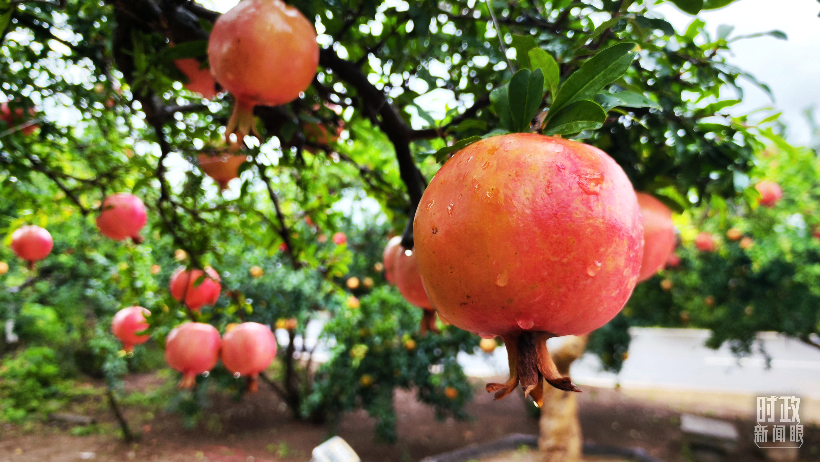 △一場秋雨過后,石榴更顯晶瑩。(總臺央視記者李輝、范一鳴拍攝)