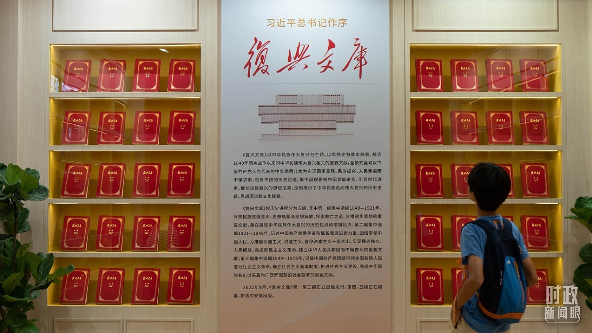△2023年8月16日,2023上海書展開幕,書展設(shè)置的“復(fù)興文庫”主題書籍展示區(qū)吸引讀者駐足查看。(圖/視覺中國)