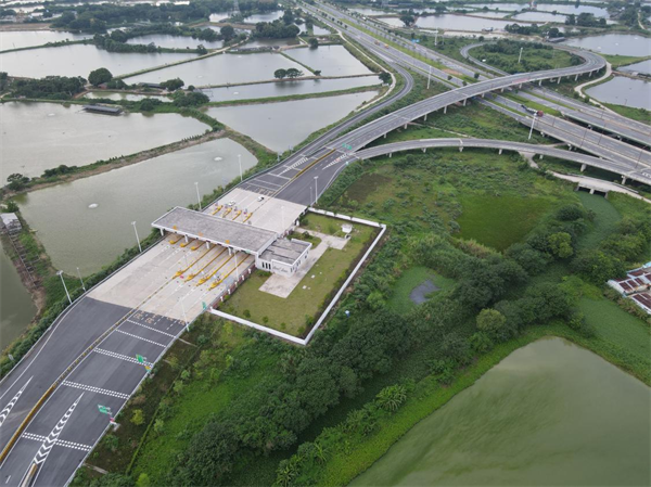 東進大道三期工程蓮花南互通立交及收費站位于肇慶市鼎湖區(qū)、肇慶新區(qū)及四會市三地交界處,與既有江肇高速公路相連接,與東進大道主線相交,型式為雙喇叭型。其中設匝道10條,橋梁7座,收費站房1座,車道數(shù)為4入4出。施工過程中克服了跨高速既有線施工、40m箱梁跨通行高速安全架設等多個技術難題,是繼馬房特大橋后,又一條拓展當?shù)爻鞘锌臻g、加強粵港澳大灣區(qū)各地溝通交流的重要交通通道,為肇慶城市建設、產(chǎn)業(yè)布局提供強有力的支撐,對提升營商環(huán)境和產(chǎn)業(yè)升級優(yōu)化提供有力保障。(王興隆/文 任偉/圖)