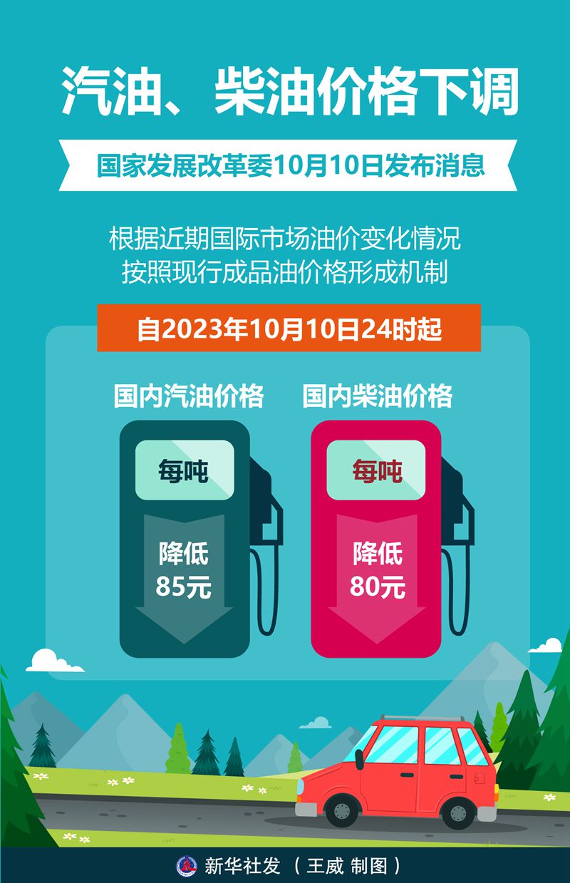 10月10日24時,新一輪成品油調價窗口開啟。國家發(fā)展改革委發(fā)布消息,根據近期國際市場油價變化情況,按照現(xiàn)行成品油價格形成機制,自2023年10月10日24時起,國內汽油、柴油價格每噸分別降低85元和80元。