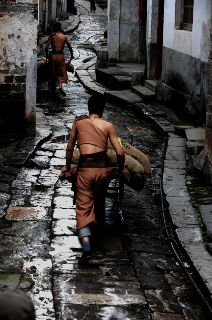 湖北赤壁羊樓洞古鎮(zhèn)是萬里茶道的重要生產(chǎn)加工集散中心。生產(chǎn)的磚茶就是沿著彎曲的石板路,用獨輪雞公車銷往世界各地。
