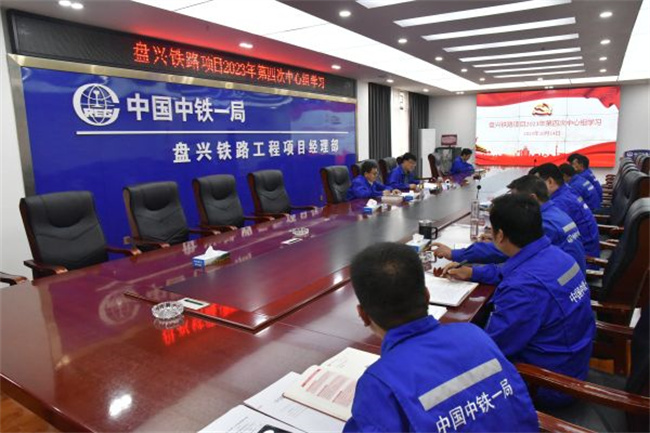 10月14日,中鐵一局盤興鐵路項目部組織全體黨員開展“以學促干 以學正風”主題教育專題研討會暨2023年第四次中心組學習會。