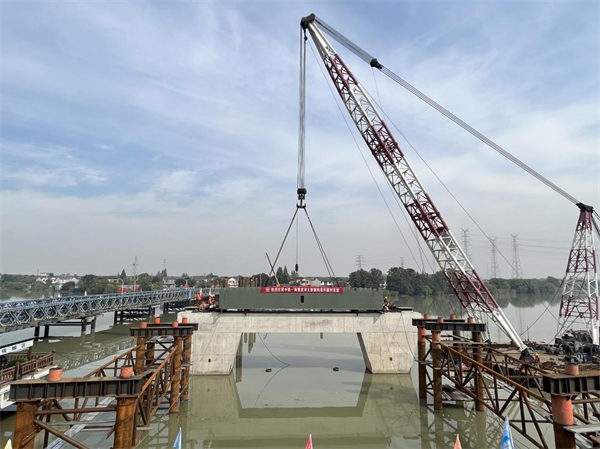 主橋鋼結(jié)構(gòu)首件順利吊裝