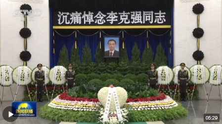 2日上午,八寶山革命公墓禮堂莊嚴(yán)肅穆,哀樂低回。正廳上方懸掛著黑底白字的橫幅“沉痛悼念李克強(qiáng)同志”,橫幅下方是李克強(qiáng)同志的遺像。李克強(qiáng)同志的遺體安臥在鮮花翠柏叢中,身上覆蓋著鮮紅的中國(guó)共產(chǎn)黨黨旗。