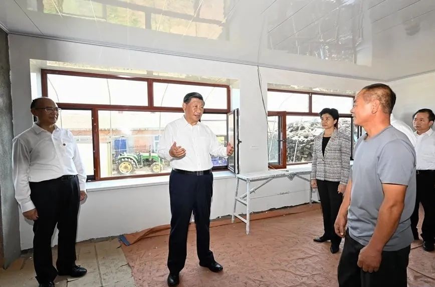 △2023年9月7日,在黑龍江尚志市老街基鄉(xiāng)龍王廟村,習(xí)近平總書記走進(jìn)村民楊春貴家中,察看受損房屋修繕情況。