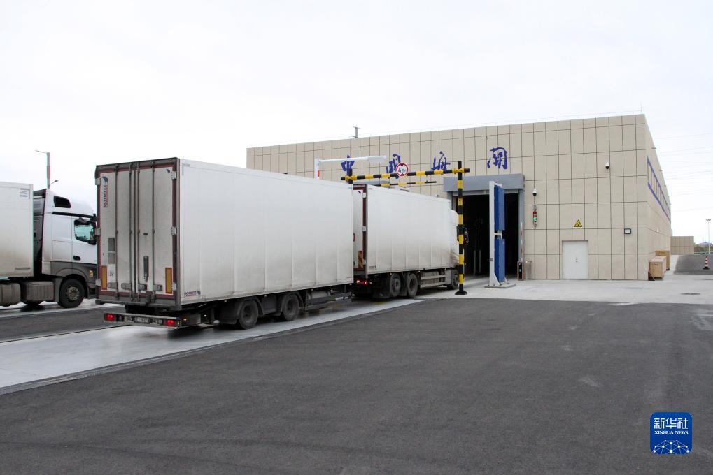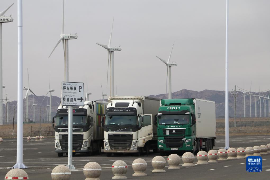 11月5日,入境貨車在阿拉山口公路口岸停車場等待檢查結(jié)果。新華社記者 趙晨捷 攝