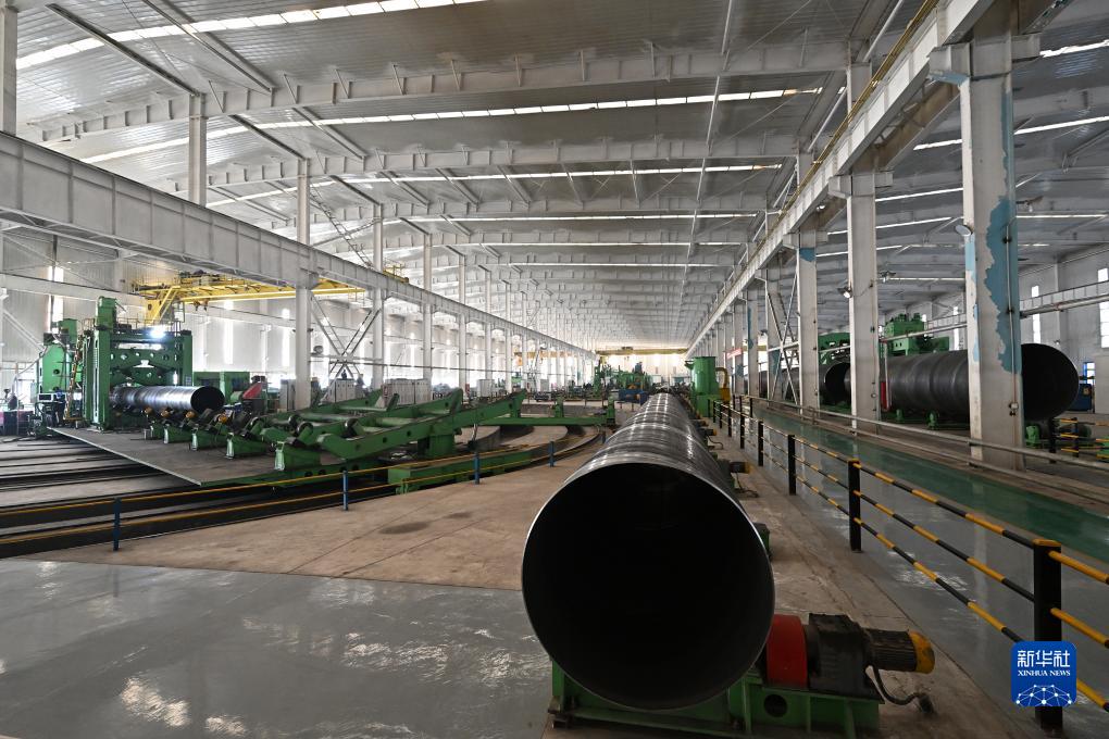 這是阿拉山口新博油氣管道制造有限責(zé)任公司的生產(chǎn)車間(11月4日攝)。該公司主營高端焊管的生產(chǎn)、保溫、防腐等業(yè)務(wù)。新華社記者 李鑫 攝