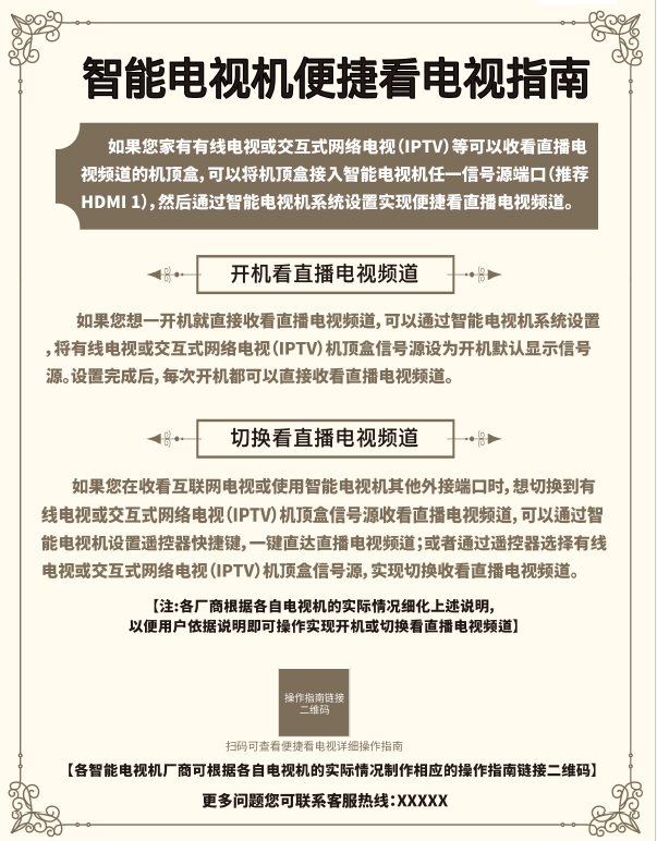 記者11月10日從國(guó)家廣播電視總局獲悉,根據(jù)治理電視“套娃”收費(fèi)和操作復(fù)雜工作部署要求,國(guó)家廣播電視總局、工業(yè)和信息化部、國(guó)家市場(chǎng)監(jiān)督管理總局、中國(guó)消費(fèi)者協(xié)會(huì)決定開(kāi)展電視收看“明白卡”提示工作。自2023年11月起,各電視機(jī)生產(chǎn)廠商要將制作完成的《電視收看“明白卡”》裝入電視機(jī)包裝箱內(nèi)的說(shuō)明材料中,同時(shí)在電商銷售頁(yè)面、線下實(shí)體銷售和廠商入戶安裝電視機(jī)過(guò)程中,將“明白卡”內(nèi)容向用戶明確展示,并告知用戶只有開(kāi)通有線電視或IPTV方可收看電視直播頻道節(jié)目。(記者王鵬)