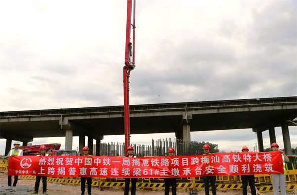 近日,中鐵一局一公司承建的揭惠鐵路站前工程2標(biāo)項目迎來新進(jìn)展,全線控制性工程跨梅汕高鐵特大橋上跨揭普惠高速(83+152+83)m連續(xù)梁61#主墩承臺暨項目首個單體積最大承臺安全順利澆筑完成,標(biāo)志著該橋梁工程取得了階段性進(jìn)展,為后續(xù)連續(xù)梁施工奠定了基礎(chǔ)。