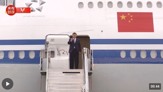 習(xí)近平乘坐專機(jī)抵達(dá)舊金山國際機(jī)場時,受到美國加利福尼亞州州長紐森、財政部長耶倫等美方代表熱情迎接。
