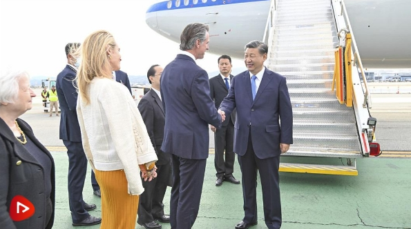 習(xí)近平乘坐專(zhuān)機(jī)抵達(dá)舊金山國(guó)際機(jī)場(chǎng)時(shí),受到美國(guó)加利福尼亞州州長(zhǎng)紐森、財(cái)政部長(zhǎng)耶倫等美方代表熱情迎接。