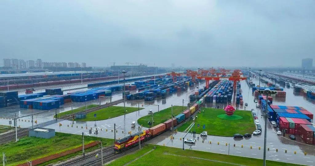 △2023年9月28日,中歐班列長(zhǎng)安號(hào)第20000列從陜西西安國際港站開出。