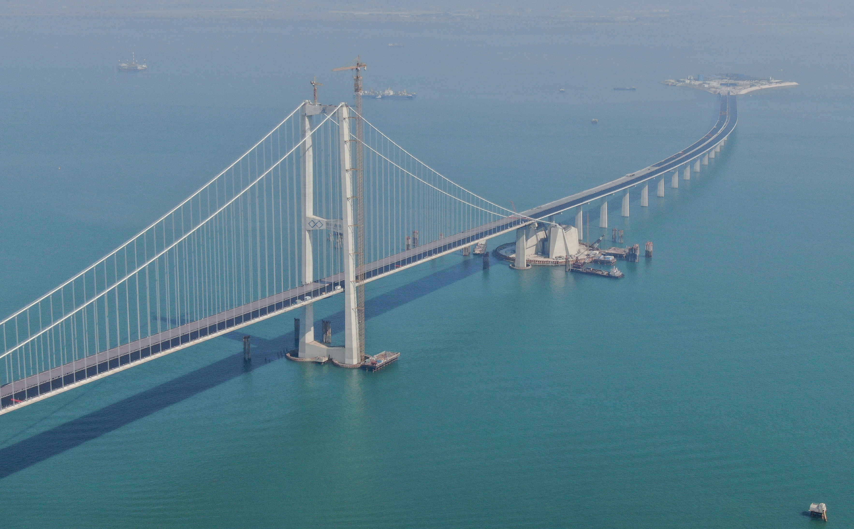 2023年11月28日,粵港澳大灣區(qū)超級(jí)工程深中通道主線正式貫通,這是深中通道伶仃洋大橋東塔及西人工島(無人機(jī)照片)。新華社記者 鄧華 攝