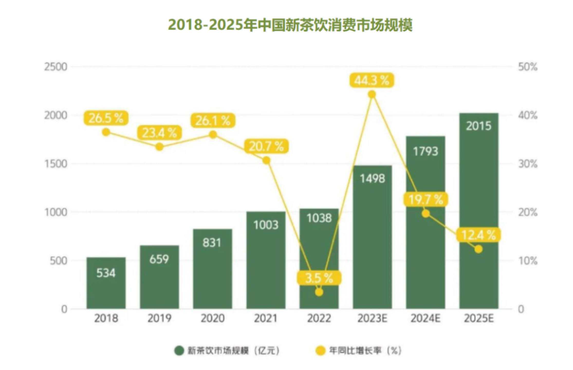 近年來,新式茶飲行業(yè)規(guī)模不斷擴大。中國連鎖經(jīng)營協(xié)會與美團聯(lián)合發(fā)布的《2023新茶飲研究報告》顯示,2023年全年新茶飲消費市場規(guī)模預(yù)計達到1498億元,且此后將進一步保持增長。據(jù)不完全統(tǒng)計,2023年8月31日在業(yè)的新茶飲門店總數(shù)約51.5萬家,與2020年年底相比增長超36%。據(jù)美團數(shù)據(jù),2023年上半年,美團平臺新茶飲外賣用戶達到1.78億人,比去年同期增長了20.3%。興業(yè)證券研報分析稱,新式茶飲行業(yè)市場規(guī)模巨大、前景廣闊,新茶飲消費走向常態(tài)化。