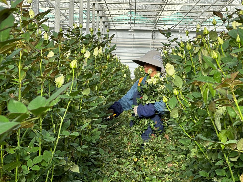 脫去厚重的外套,張小紅換上輕便的工作服,戴好手套和帽子,拿起大剪刀,開始了一天的剪花工作。只見她走進(jìn)幽深窄密的綠色長(zhǎng)廊,直到看不見人影。少許時(shí)刻,她便抱著一大捧玫瑰走了出來,新鮮的露水從嬌嫩的花瓣上滴落。平板車?yán)锸M清水,她和其他工人們一起,將新鮮采摘的玫瑰用網(wǎng)紗細(xì)心地裹好,然后放置水中。再過不久,這些玫瑰將被運(yùn)往全國(guó)各地甚至海外,為人們帶來愉悅和享受。