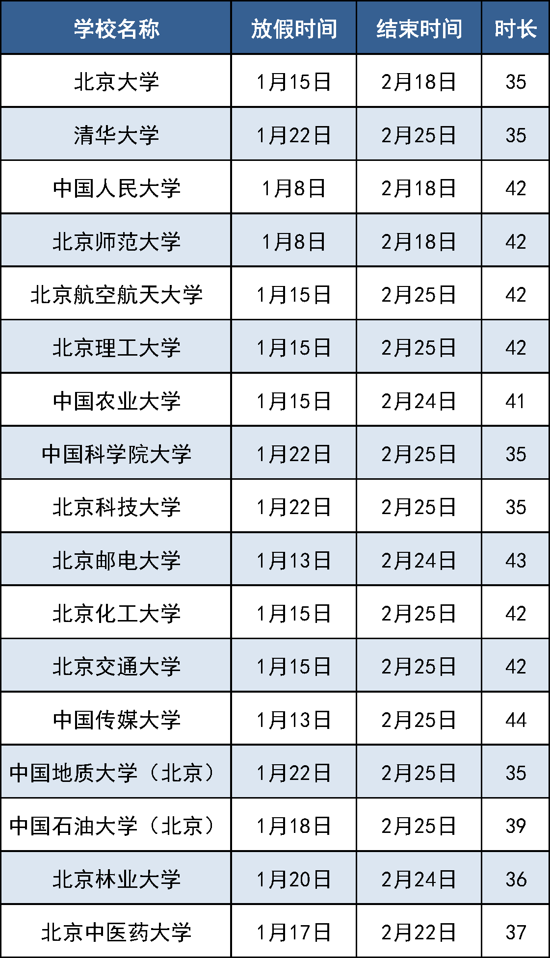 寒假在即,北京各大高校紛紛公布2024年寒假放假安排。北京大學、清華大學、中國人民大學等近40所高校公布的放假安排中,最長的假期達48天。