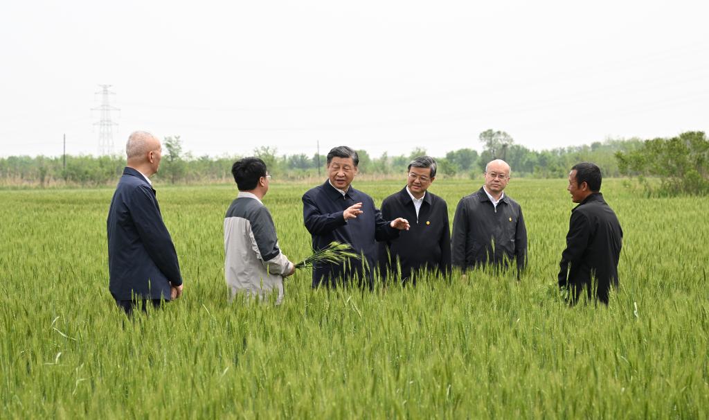 2023年5月11日至12日,中共中央總書記、國家主席、中央軍委主席習(xí)近平在河北考察,并主持召開深入推進(jìn)京津冀協(xié)同發(fā)展座談會。這是11日上午,習(xí)近平在滄州市黃驊市舊城鎮(zhèn)仙莊片區(qū)旱堿地麥田考察時,同種植戶、農(nóng)技專家親切交流。