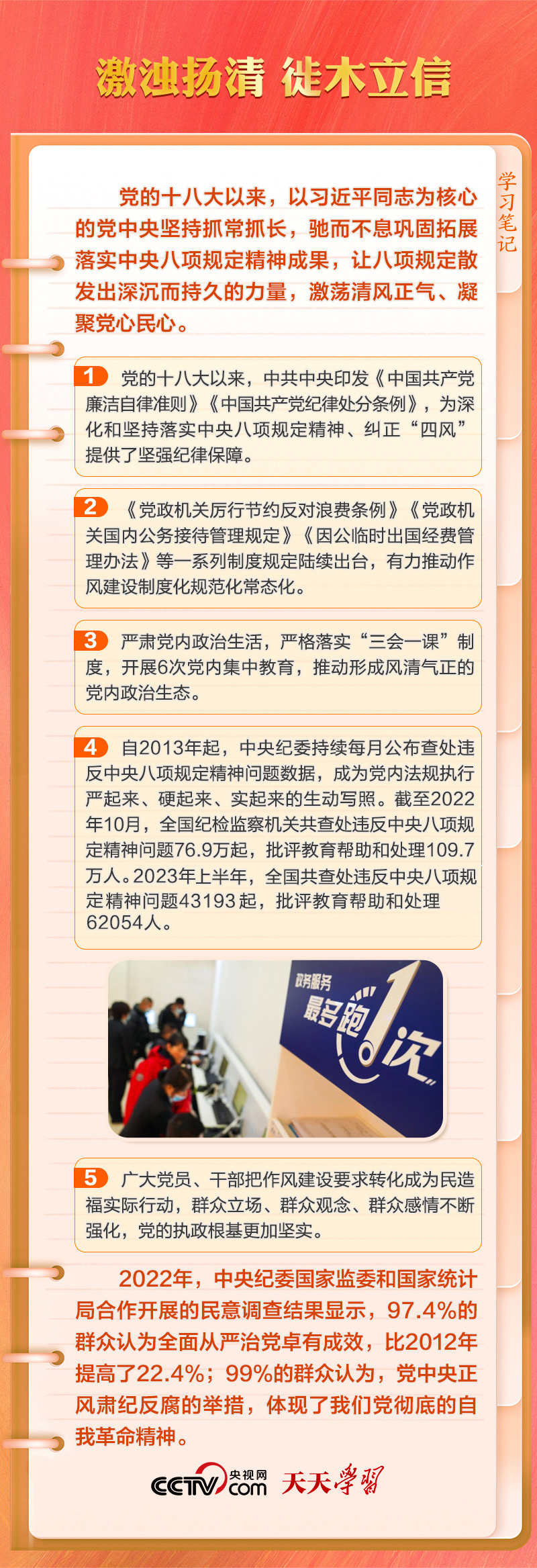 天天學(xué)習(xí)在二十屆中央紀(jì)委二次全會上,習(xí)近平總書記指出:“制定實(shí)施中央八項(xiàng)規(guī)定,是我們黨在新時(shí)代的徙木立信之舉,必須常抓不懈、久久為功,直至真正化風(fēng)成俗,以優(yōu)良黨風(fēng)引領(lǐng)社風(fēng)民風(fēng)。”