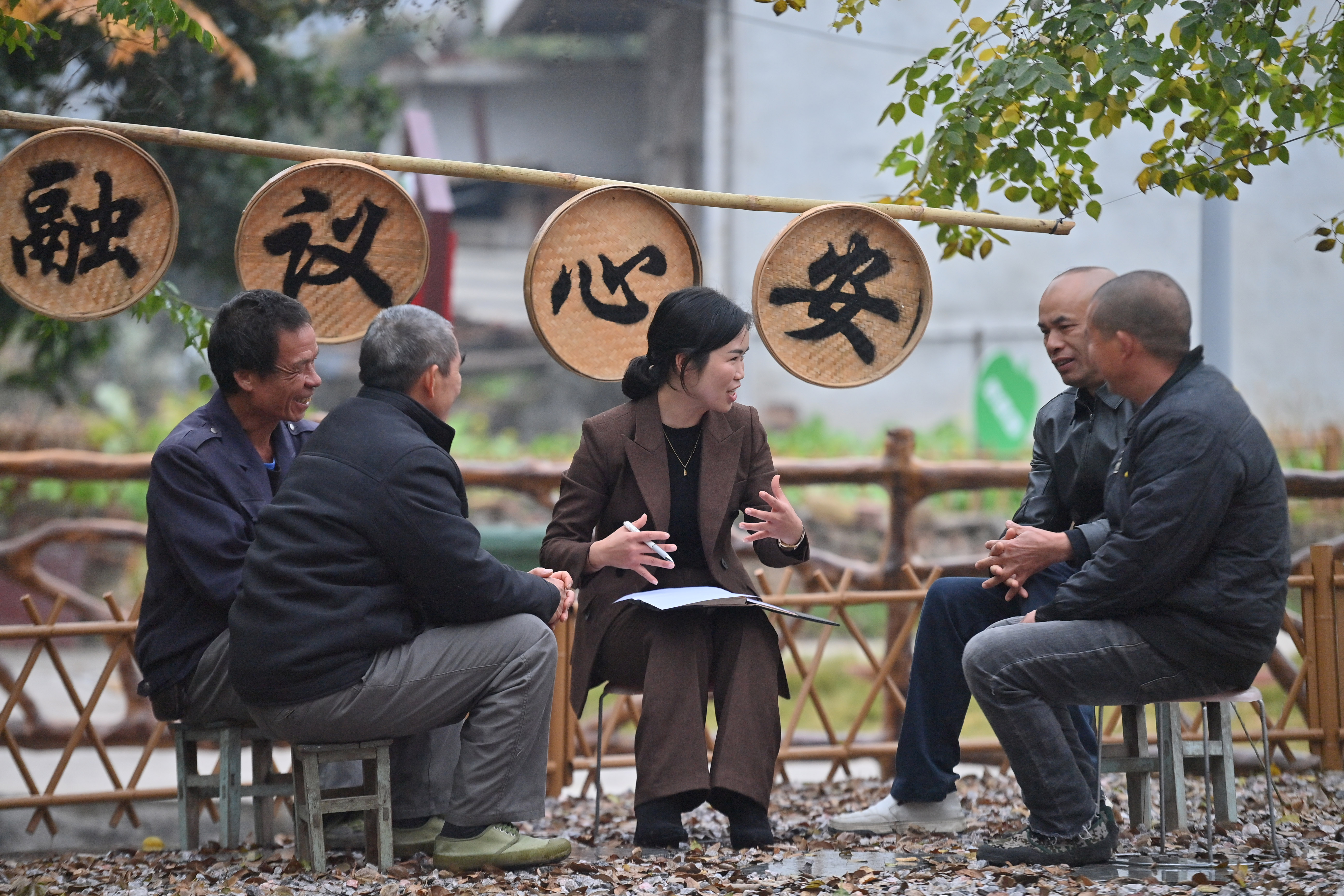 2024年1月5日,在廣西融安縣浮石鎮(zhèn)六寮村議事協(xié)商主題廣場,鎮(zhèn)、村干部和村民在議事。新華社記者 黃孝邦 攝