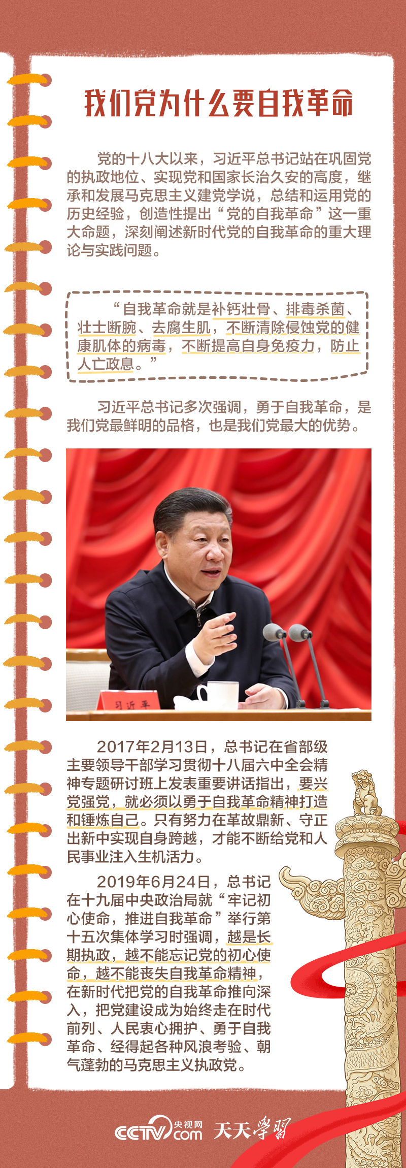 天天學(xué)習(xí)“在新時(shí)代十年全面從嚴(yán)治黨的實(shí)踐和理論探索中,我們不斷深化對(duì)黨的自我革命的認(rèn)識(shí),積累了豐富實(shí)踐經(jīng)驗(yàn),形成了一系列重要理論成果,系統(tǒng)回答了我們黨為什么要自我革命、為什么能自我革命、怎樣推進(jìn)自我革命等重大問題。”1月8日,習(xí)近平總書記在中國(guó)共產(chǎn)黨第二十屆中央紀(jì)律檢查委員會(huì)第三次全體會(huì)議上發(fā)表重要講話。