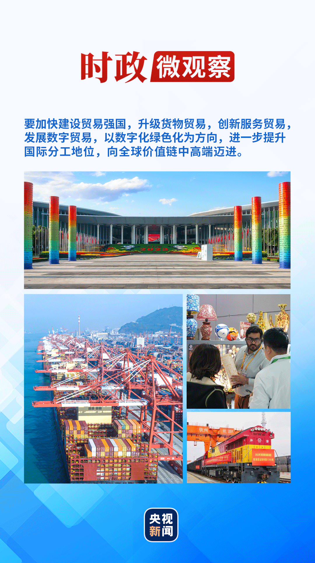 習近平總書記強調(diào):“要加快建設貿(mào)易強國,升級貨物貿(mào)易,創(chuàng)新服務貿(mào)易,發(fā)展數(shù)字貿(mào)易,以數(shù)字化綠色化為方向,進一步提升國際分工地位,向全球價值鏈中高端邁進。”