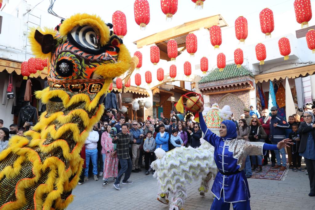 1月22日,人們在摩洛哥首都拉巴特老城里觀看舞獅表演。當(dāng)日,由中國文化和旅游部、中國駐摩洛哥大使館主辦的2024摩洛哥“歡樂春節(jié)·中國廟會(huì)”活動(dòng)在摩洛哥首都拉巴特開幕,迎接即將到來的中國農(nóng)歷龍年春節(jié)。新華社記者 霍晶 攝
