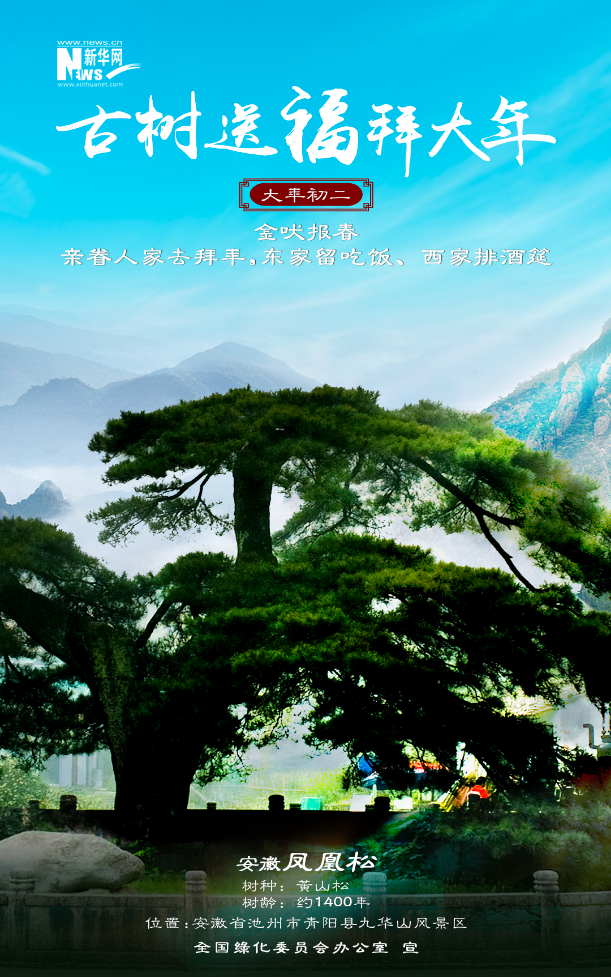 今年春節(jié),新華網聯(lián)合全國綠化委員會辦公室,策劃推出“古樹送福拜大年”系列海報12張,選取寓意喜樂吉祥、文化底蘊深厚、景觀自然絕美的古樹名木,結合中國春節(jié)習俗,給廣大網友拜年啦!