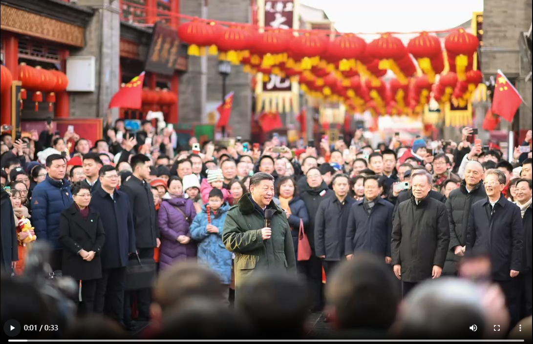 中華民族傳統(tǒng)節(jié)日春節(jié)即將到來(lái)之際,中共中央總書(shū)記、國(guó)家主席、中央軍委主席習(xí)近平來(lái)到天津,看望慰問(wèn)基層干部群眾,向全國(guó)各族人民和香港同胞、澳門(mén)同胞、臺(tái)灣同胞、海外僑胞拜年!