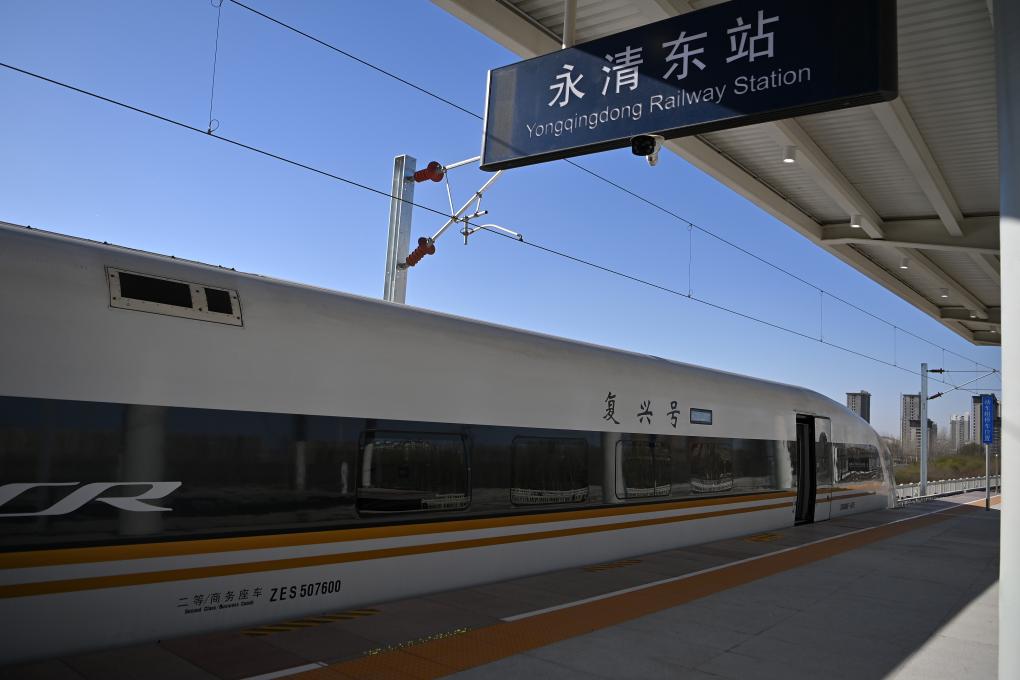 一輛復(fù)興號動車組列車??吭诮蚺d城際鐵路永清東站。新華社記者 李然 攝